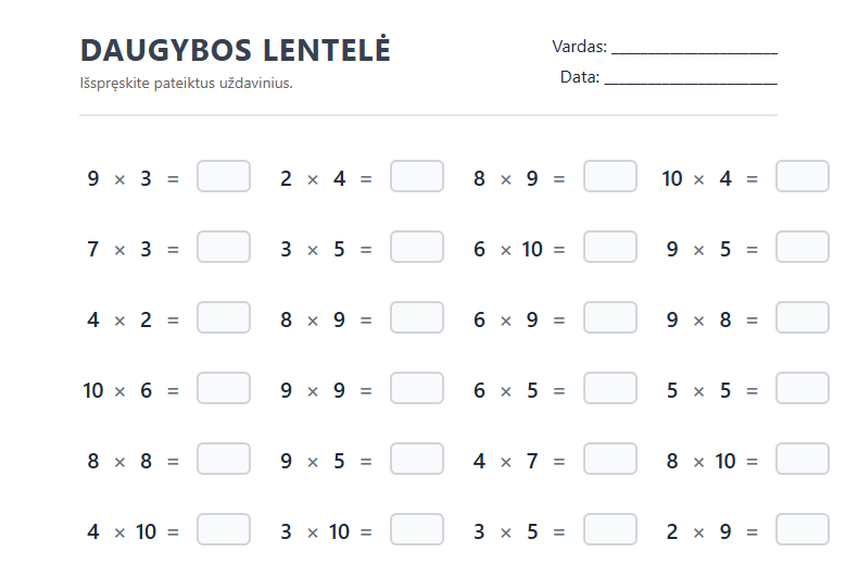 Viena didžiausių problemų su statiniais pratybų sąsiuviniais yra ta, kad vaikai dažnai įsimena ne patį veiksmą, o jo vietą puslapyje arba atsakymų seką. Mūsų sukurti interaktyvūs užduočių generatoriai išsprendžia šią problemą visiems laikams.