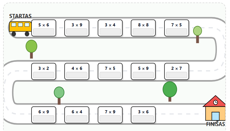 Žaidybinė versija. Vaikas turi "nuvežti" autobusą į mokyklą spręsdamas uždavinius, kurie išdėstyti vingiuotu keliu. Tai sukuria tikslo jausmą ir paverčia namų darbus mažu nuotykiu.